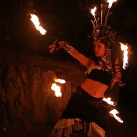 „STARDUST“ ist eine faszinierende Feuer Performance mit leidenschaftlichen Choreografien und ausdrucksvollen tänzerischen Elementen, vereint mit technischer Jonglage-Kunst.